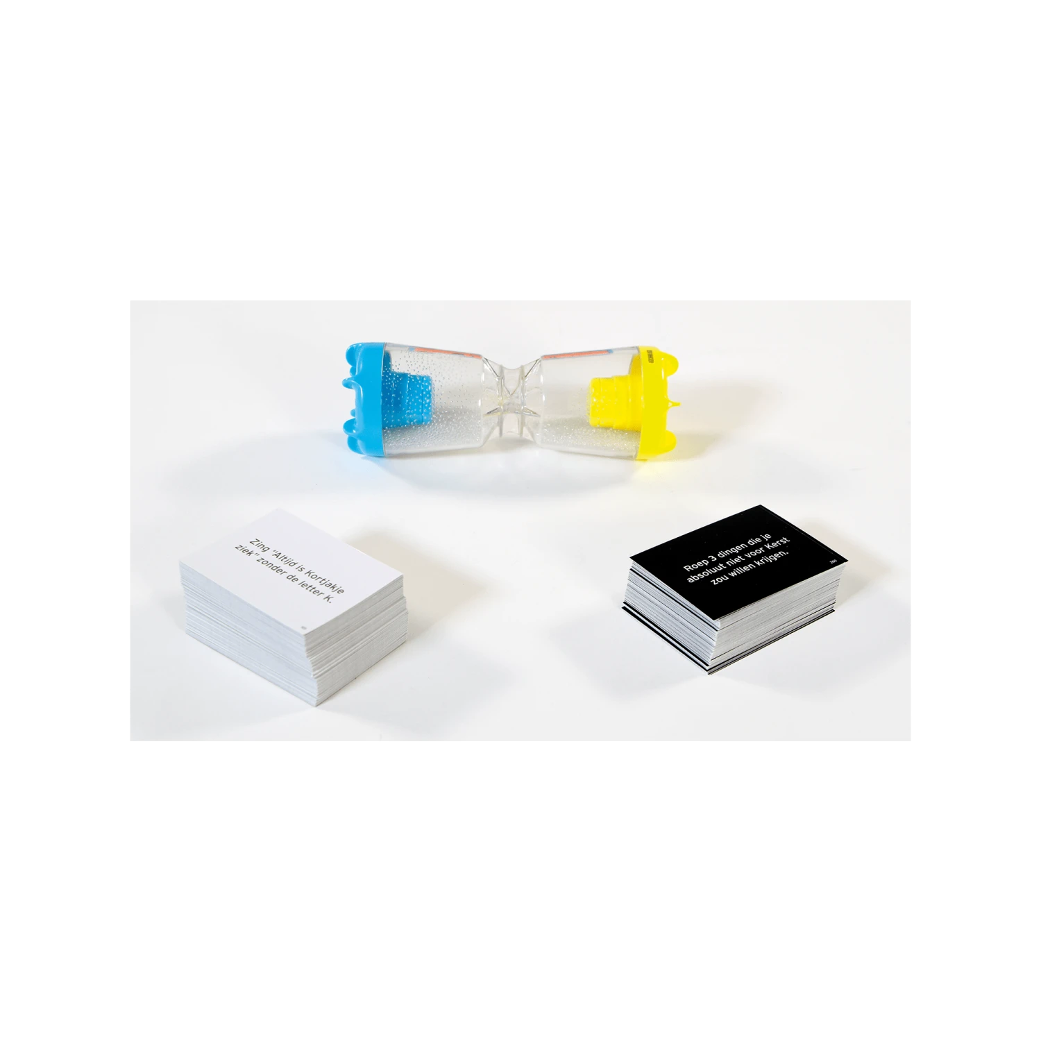 2 teams, 400 uitdagingen. Geen tijd te verliezen! In dit doldwaze partyspel vol belachelijk hilarische uitdagingen. Probeer je als team zo snel mogelijk opdrachten te vervullen om ervoor te zorgen dat het andere team “geen zand” meer heeft.
