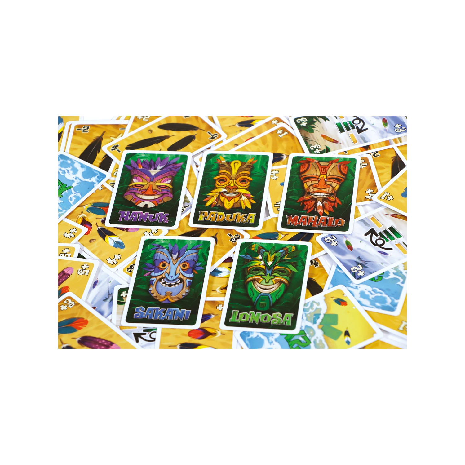 Het is feest op het eiland! Bij dit feest worden 5 verschillende houten maskers versierd. Het mooist versierde masker zal geluk en fortuin brengen voor degene die het gemaakt heeft. Iedereen versiert samen alle maskers, en wil natuurlijk zijn eigen masker zo mooi mogelijk maken, maar je wilt voorkomen dat anderen doorhebben welk masker van jou is, zodat de mooiste veren uiteindelijk bij jouw masker belanden.