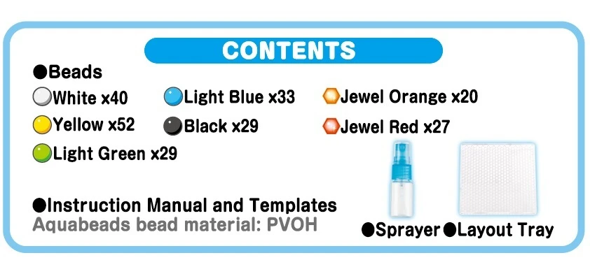 Het Aquabeads Mini – funpakket is een geweldige, kleine doos waarin alles zit wat je nodig hebt om te beginnen met het maken van Aquabeads-creaties. Plaats de parels op het legbord, sproei er water op en ze blijven magisch aan elkaar plakken. Net zoals strijkparels maar dan zonder de hitte en het strijkijzer. Maak auto?s, raketten en dieren of maak je eigen ontwerpen met de 200 parels in zeven kleuren. Een cool cadeau voor jongens en meisjes. Adviesleeftijd: 4+