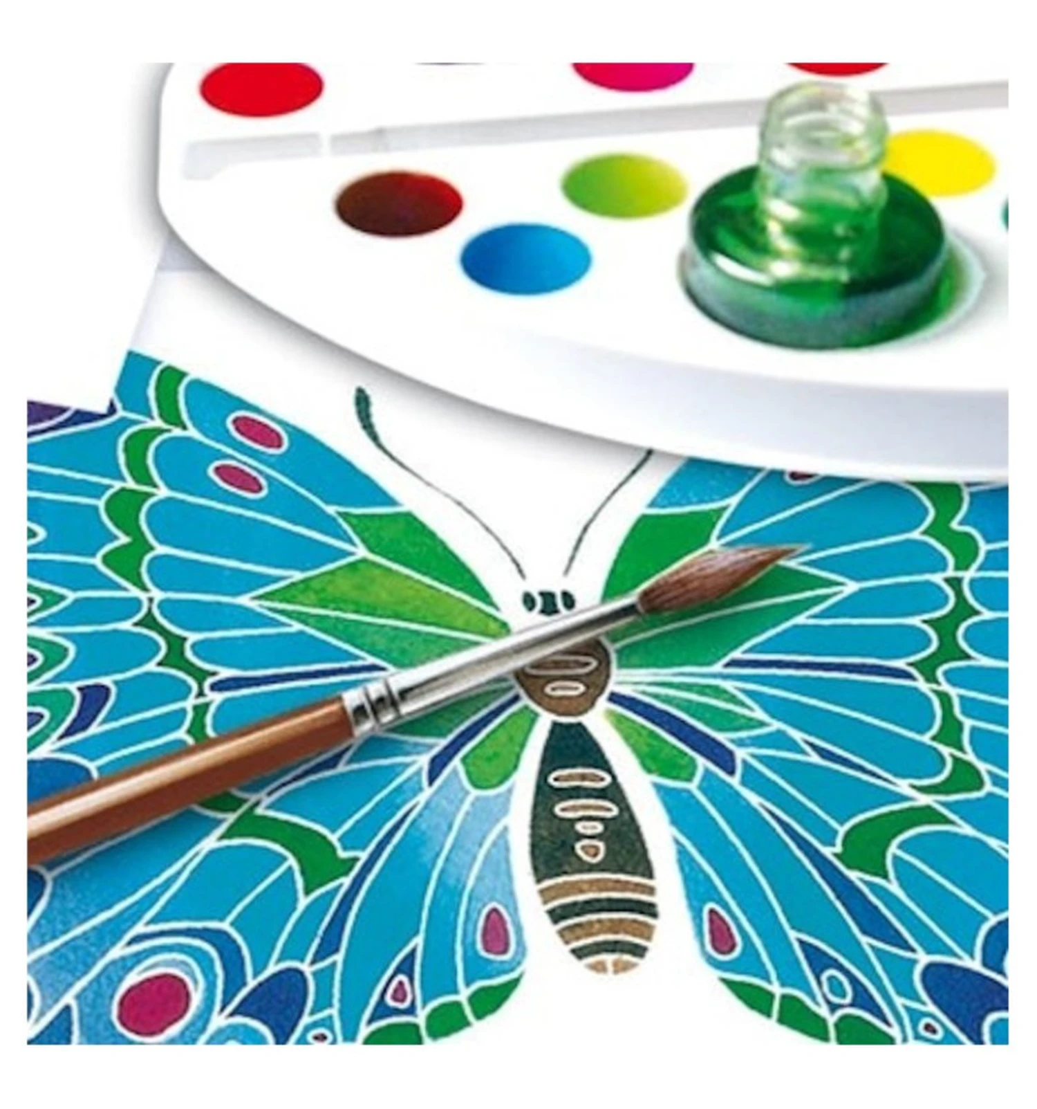 Er wordt een speciale techniek gebruikt waardoor de kinderen niet buiten de lijntjes kunnen kleuren. Doordat de randen van de tekening dikgedrukt zijn, kunnen de kleuren niet overlopen. De kleuren zijn met elkaar te mengen. Geschikt vanaf 5 jaar. Prachtige resultaten verzekerd!