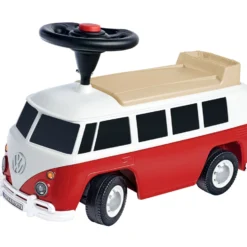 Kinderen kunnen achterop een miniatuur VW T1 de omgeving onveilig maken. Een gedetailleerd ontwerp laat nostalgici dromen en de zitting met een kleine rugleuning kan indien nodig worden verwijderd en onthult een geheim compartiment.