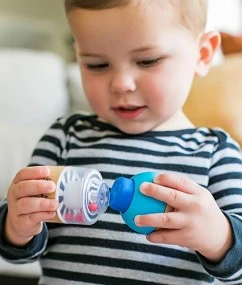 Speelblokken fundamentals laat je baby of dreumes basisprincipes ontdekken op een speelse maar toch doelgerichte manier. Deze houten blokken set bevat 4 bouwstenen: Het groene blokje heeft 4 vormen en is bedoeld om de tastzin te ontwikkelen, het gele blokje is bedoeld voor het ontwikkelen van de fijne motoriek door aan de oranje handgrepen te draaien, het blokje met de doorzichtige bovenkant is met de contrastrijke patronen bedoeld om de visuele ontwikkeling te stimuleren, het blauwe blokje is bedoeld voor de auditieve ontwikkeling door het indrukken van de donkerblauwe knop zal het blokje piepen. Je baby of dreumes zal dol zijn op stapelen, draaien, aanraken en drukken van deze houten blokken set.