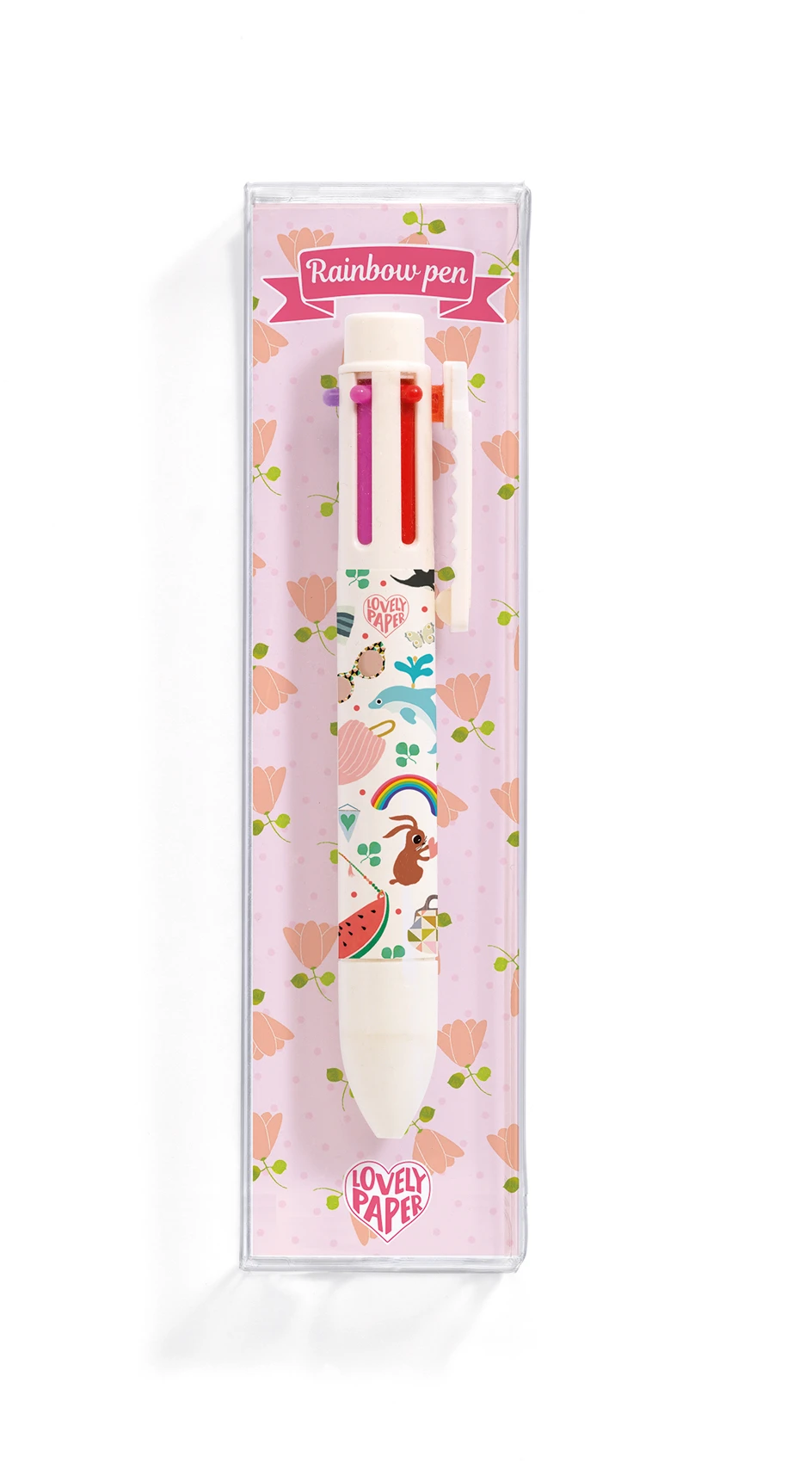 Een mooie 6-kleuren pen met prachtige illustraties, heel praktisch, om al je ideeën in kleur op te schrijven!