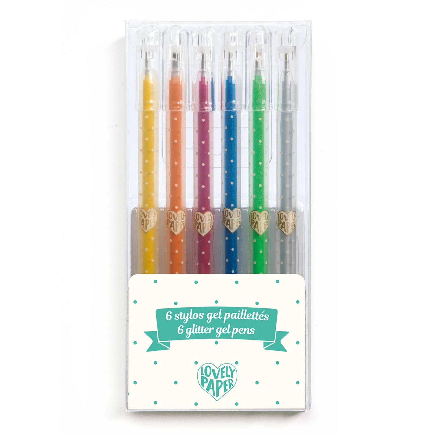 Een set van 6 glittergelpennen in een transparant etui . Met deze glitter gelpennen worden je notities en tekeningen extra fraai!