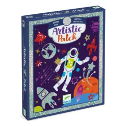 Maak 12 prachtige platen met thema de Ruimte op een geïllustreerde achtergrond met dit knutselsetje van Djeco.
