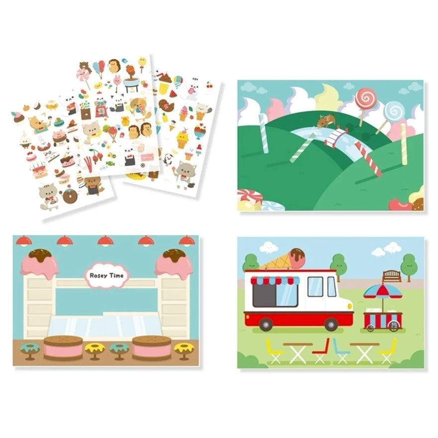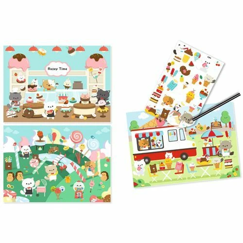Deze knutsel-set bevat 3 mierezoete achtergrondplaten. De achtergronden moeten nog van alle details voorzien moeten worden. Je kunt de details toevoegen door over de plaatjes op de stickervellen te krassen met een potlood of pen. Het figuurtje zet zich dan over op de achtergrondplaat en zo maak je de mooiste afbeeldingen.