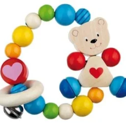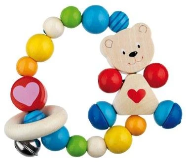 Deze houten bijtring heeft ook nog een klein belletje als extra stimulans voor uw kind om deze ring te pakken.