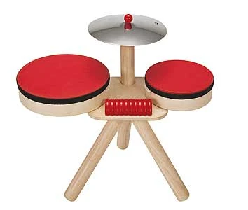 Het Plantoys 6410 drumstel bestaat uit 2 formaten trommels, een bekken en een guiro. De guiro kan je gebruiken door erover heen te schrapen met de drumstick. Uiteraard bevat de Plantoys 6410 drumstel set ook 2 drumsticks.