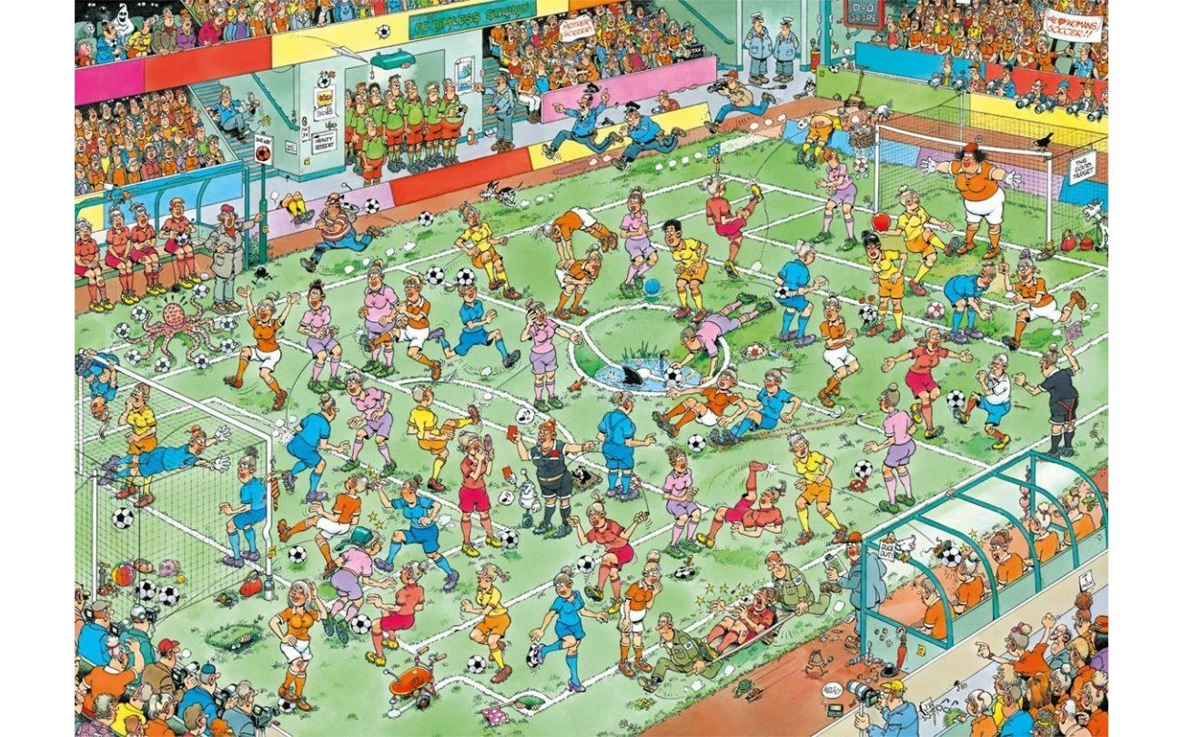 Jan van Haasteren Vrouwenvoetbal 1000 stukjes. Soort: Legpuzzel. Aantal stukjes : 1000 .