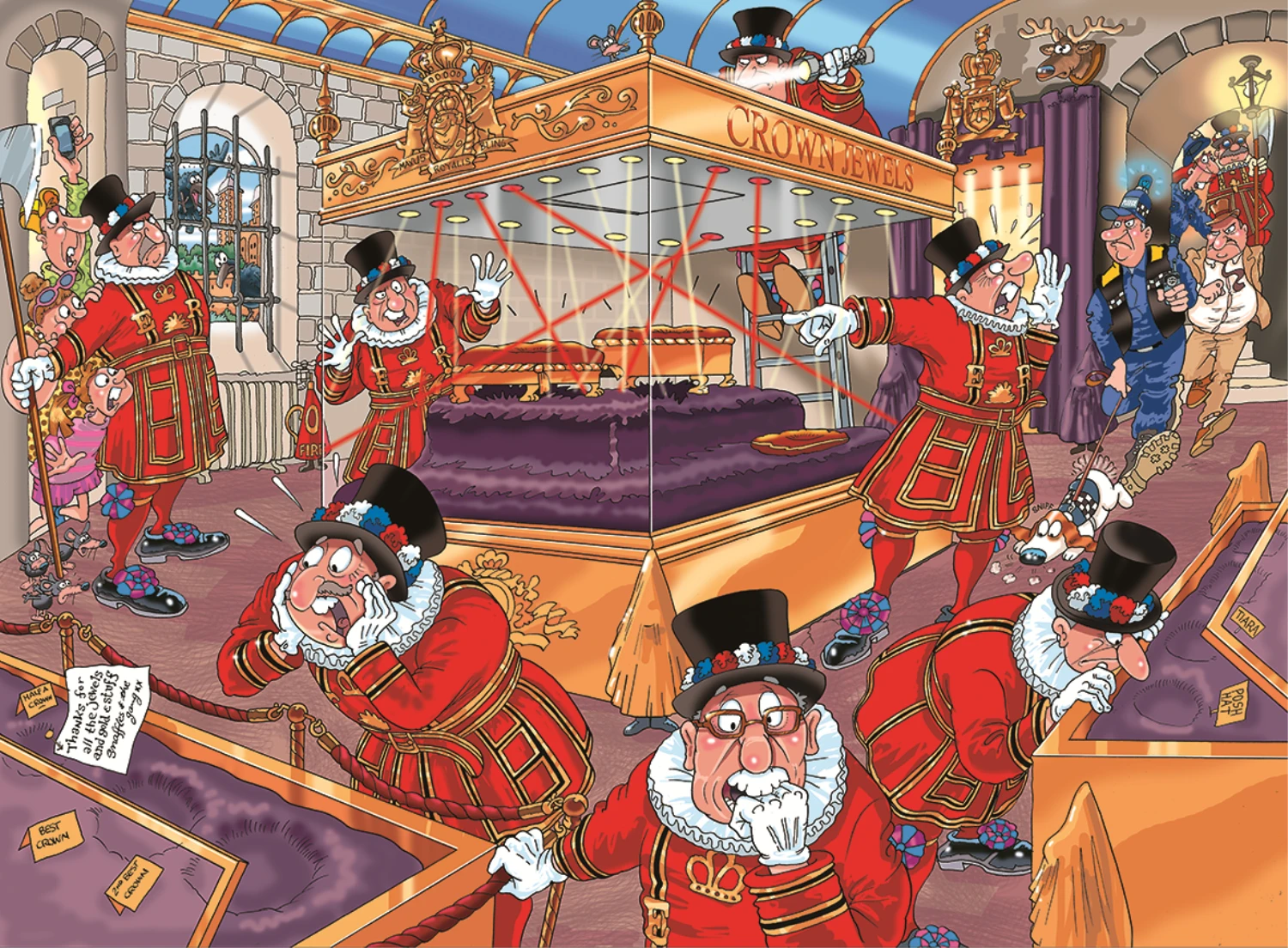 Wat gaat er gebeuren? Gebruik je fantasie om erachter te komen wat er gaat gebeuren met de personen die afgebeeld staan op de verpakking.De bewakers moeten vliegensvlug nadenken, en alles controleren. Waar zijn de juwelen? Waar zijn de dieven? Dat wordt nog een hele klus!