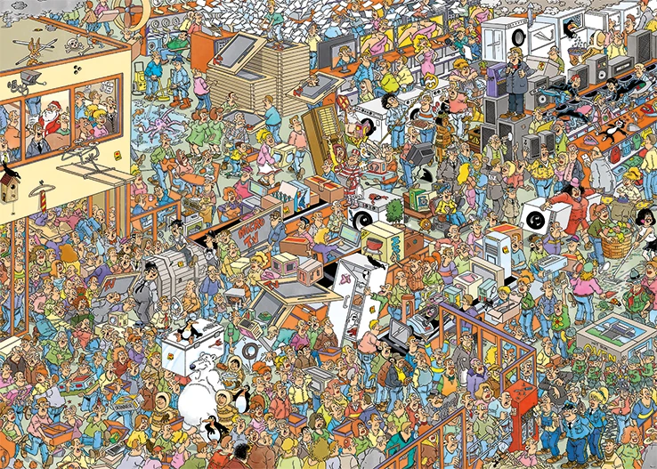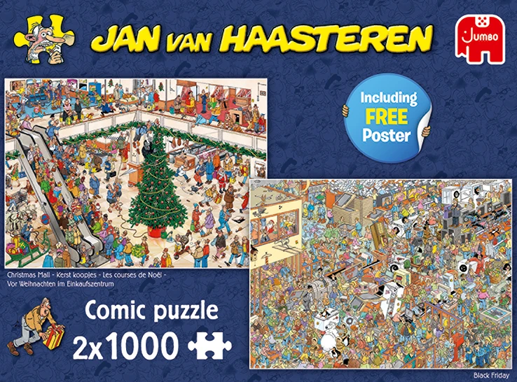 Jan van Haasteren Shoppen voor de Feestdagen 2×1000 stukjes. Soort: Legpuzzel. Aantal stukjes : 1000. Genre: Strips,