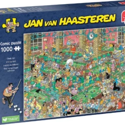 Voor een middagje vermaak is de Jan van Haasteren familie dit keer te vinden in een poolbar. In deze chaotische bar zal je aan een goed potje poolen helaas niet toe komen, maar om lachend een puzzel te maken zit je precies goed! Getekend door Jan van Haasteren.