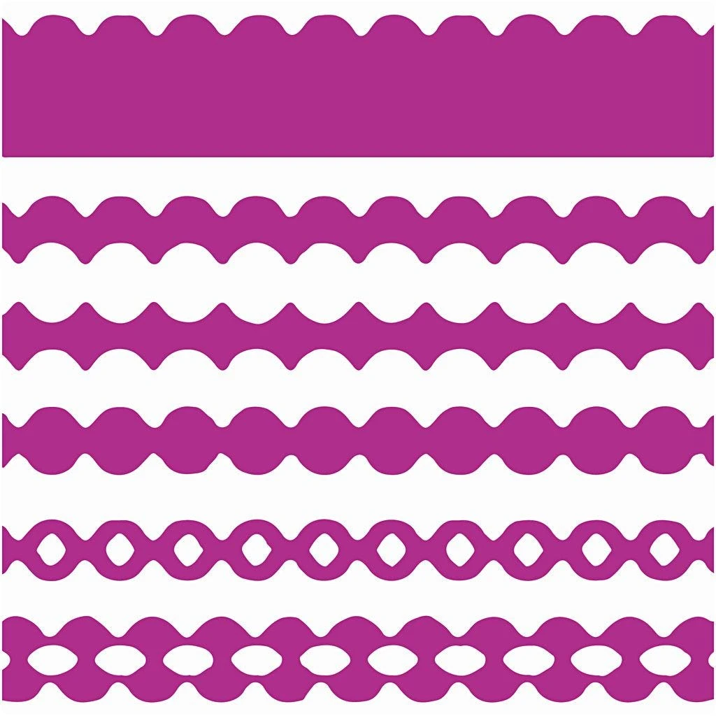 Schaar met decoratief mes van roestvrij staal waarmee u randen kunt versieren of stroken mee kunt maken. Er zijn vele combinaties mogelijk van verschillende decoratieve effecten door de schaar ondersteboven te gebruiken of door het te knippen materiaal te vouwen.