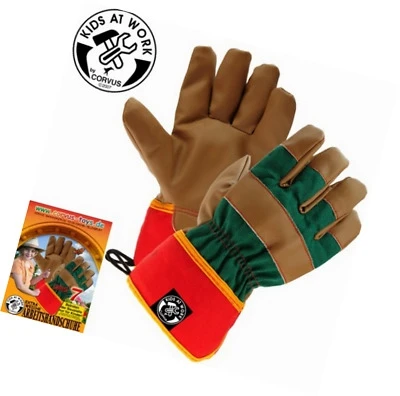 Met deze werkhandschoenen van het duitse speelgoedmerk Corvus zijn de handen van de kinderen goed beschermd bij het klussen of tuinieren. De handschoenen zijn gemaakt van zacht en stevig materiaal en het imitatieleer biedt extra bescherming.