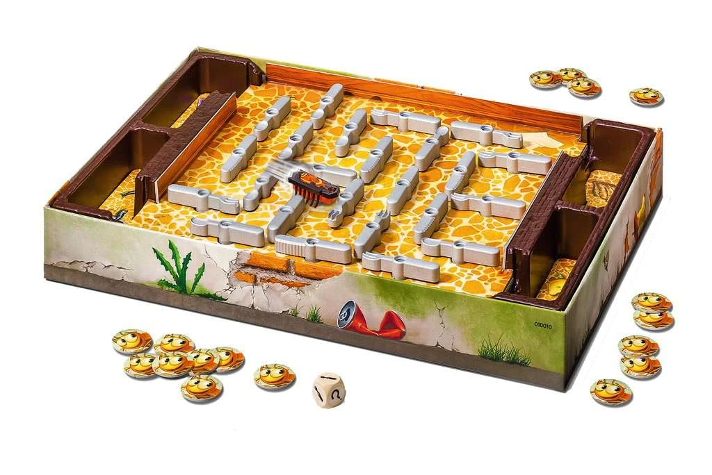 Daar zijn de kakkerlakken weer! Vliegensvlug schiet er een door de keuken en jaagt iedereen de stuipen op het lijf. Nu geen tijd meer verliezen! Laat ze snel met behulp van het uitliggende bestek in jullie vallen lopen. De dobbelsteen geeft aan of je een vork, mes of lepel draaien mag. Goed kijken en snel reageren, daar draait het om. Wie slim het bestek draait, laat de kakkerlakken in de val lopen. Voor iedere kakkerlak die je vangt, krijg je een fiche en wie als eerste 5 fiches in de wacht gesleept heeft, wint de kakkerlakkenjacht. Ravensburger spel met de originele HEXBUG® nano®.