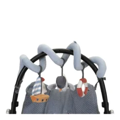Ahoy, kleine matroos! Elke dag wordt een nieuw avontuur in de baai met deze uitnodigende activiteitenspiraal. Dit uitdagende speelgoed is gemaakt van katoen en corduroy en heeft verschillende speeltjes, waaronder een zeemeeuw, een zeilboot en een reddingsboei met verschillende leuke labels en een spiegeltje voor zelfontdekking. De spiraal stimuleert de eerste hand-oogcoördinatie van je kleintje en zorgt voor urenlang vermaak. Je kunt hem gemakkelijk bevestigen aan de box, een autostoeltje of kinderwagen.