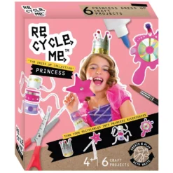 Re-Cycle-Me gelooft in een wereld waarin kinderen en hun ouders zich meer bewust worden van de hoeveelheid afval die we allemaal produceren. Kinderen kunnen helpen dit te verminderen door te recyclen! Met deze doos kun je een echt prinsessen kostuum maken. Het enige dat je uit je eigen kast nodig hebt is lijm, een schaar, een PET-fles, een keukenrol, karton en een oude cd.