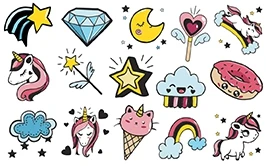 Met Stampo Kids Eenhoorns kun je helemaal los gaan. De set bestaat uit 15 verschillende stoere houten stempels en een zwart inktkussen. Ga lekker stempelen en kleur de stempels daarna in.