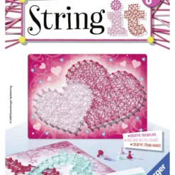 Maak je eigen hart met het nieuwe “String it” van Ravensburger! Met kunststof pinnen en vrolijk gekleurd draad maak je heel eenvoudig kunstwerken. Gewoon de pinnen in de afbeeldingen drukken en met draad verbinden. De set bestaat uit: 2 kaarten met afbeeldingen, 240 pinnen, 1 drukhulp voor de pinnen, draad en de handleiding.