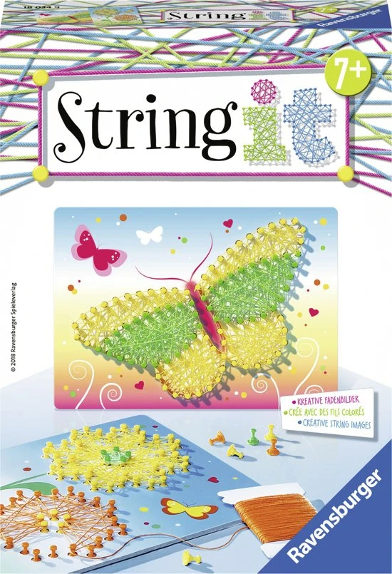 Maak je eigen hart met het nieuwe “String it” van Ravensburger! Met kunststof pinnen en vrolijk gekleurd draad maak je heel eenvoudig kunstwerken. Gewoon de pinnen in de afbeeldingen drukken en met draad verbinden. De set bestaat uit: 2 kaarten met afbeeldingen, 240 pinnen, 1 drukhulp voor de pinnen, draad en de handleiding.