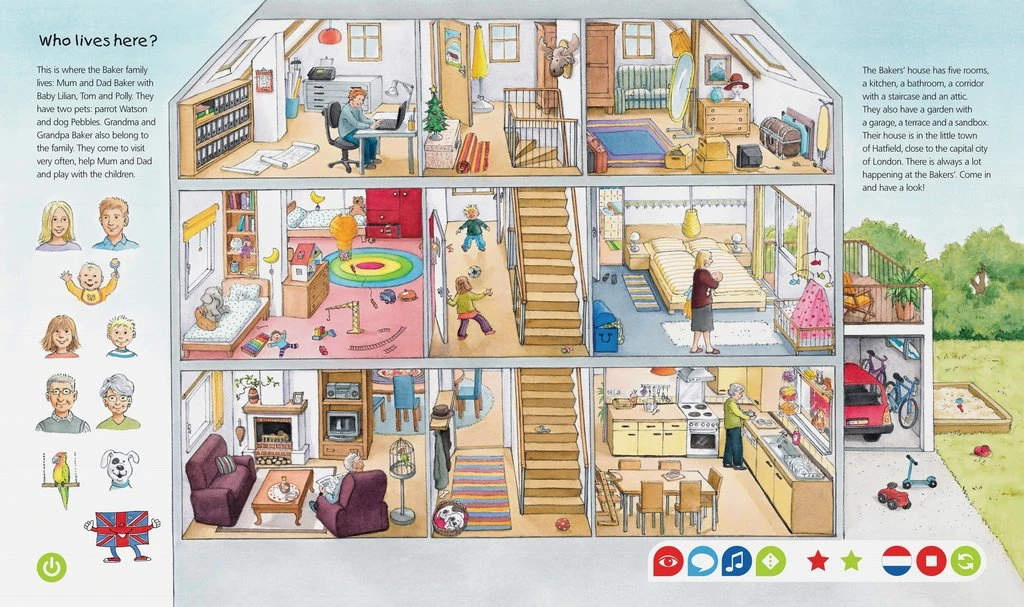 Door leuke dialogen, informatieve verhalen en spannende spelletjes leren kinderen spelenderwijs de Engelse taal en leuke wetenswaardigheden over de Engelse cultuur, met vertaling in het Nederlands.
