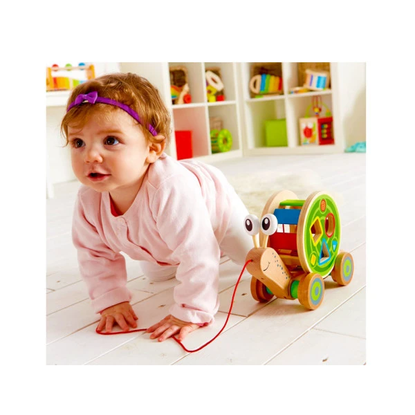 Deze veelzijdige slak draagt in zijn slakkenhuis houten blokken terwijl hij je volgt. De sorteerder draait rond tijdens het voortbewegen en je kunt hem ook als losse blokkenstoof gebruiken.